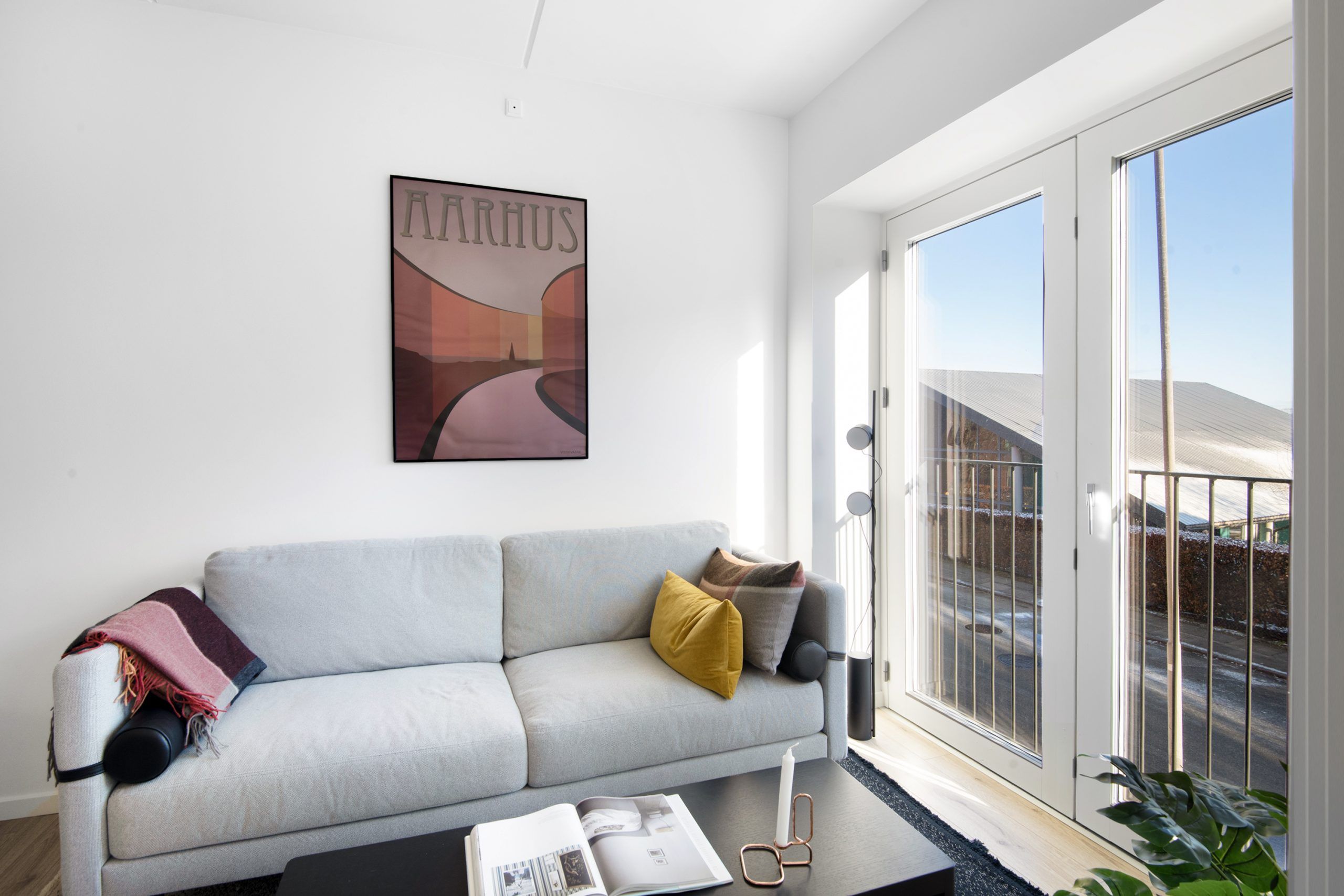 Lejligheden byder dig velkommen med en åben og lys atmosfære. Store vinduespartier giver masser af naturligt lys.