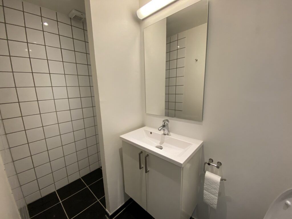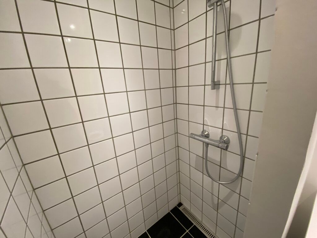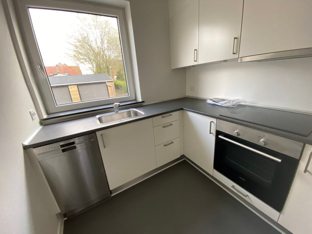Lejligheden byder på et flot og hyggeligt køkken med hårde hvidevarer i rustfrit stål og et skønt lysindfald, som gør rummet indbydende og funktionelt. Badeværelset er nyere og stilrent indrettet med et flot gulv af sorte, moderigtige klinker, bruseniche og badmiljø med opbevaringsmuligheder.
